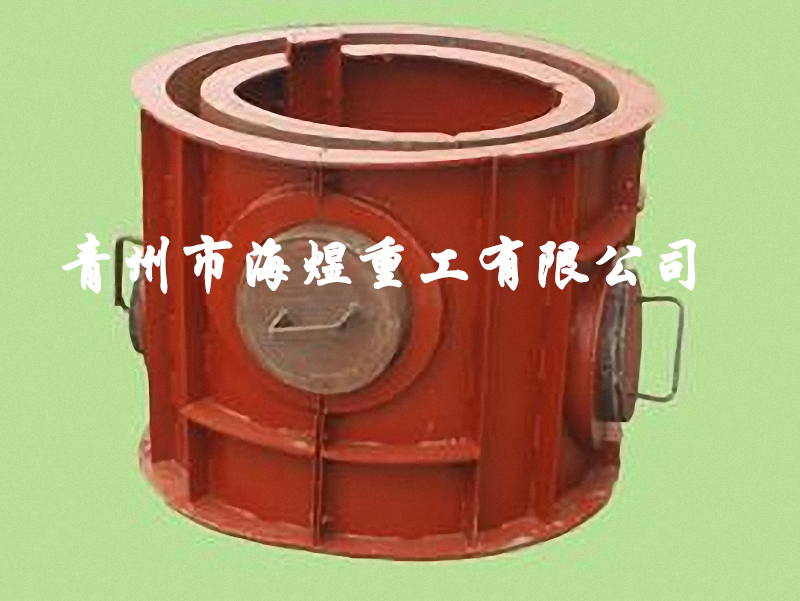 檢查井模具采用組裝式鋼質(zhì)模具,由外模、內(nèi)模、上下法蘭幾個(gè)部分組成,每部分模具用直徑12mm的螺栓進(jìn)行連接,可以方便的進(jìn)行拆裝。模具的面板厚度為5mm,加強(qiáng)肋板厚10mm。 裝配式檢查井采用注塑式鑄鐵踏步,抗拉強(qiáng)度達(dá)到400MPa以上,延伸率18%。