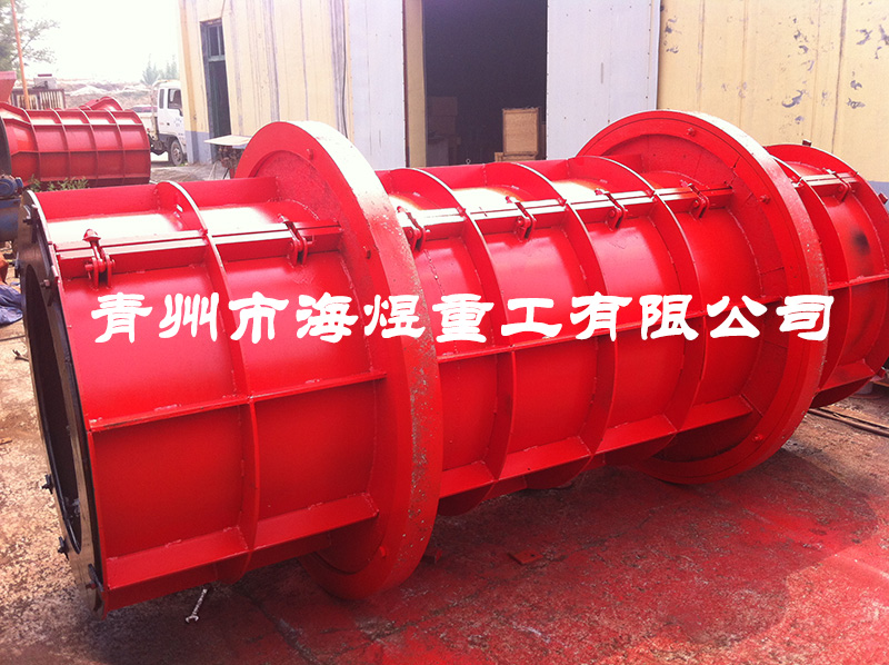 600×3000水泥管道模具筒體由厚度為8mm鋼材經卷板機卷制而成,筒體外壁用法蘭、環(huán)筋、縱筋加固,防止模具在離心力的作用下變形,跑圈采用經車床加工的45#鑄鋼圈,模具尺寸精準,可根據用戶要求的壁厚定制。