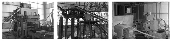 研發(fā)成功的國內(nèi)第一臺汽車式混凝土攪拌運輸車(見圖5),為商品混凝土的應(yīng)用創(chuàng)造了先決條件;研發(fā)成功臥軸強制式混凝土攪拌機(見圖6),結(jié)束了我國只能生產(chǎn)自落式混凝土攪拌機的歷史,奠定了現(xiàn)代化攪拌站、攪拌樓的發(fā)展基礎(chǔ)。 ![]() 圖4 鼓輪式混凝土噴射機 | 圖5 混凝土攪拌運輸車 | 圖6 JD200型單臥軸混凝土攪拌機 | 圖7 砌塊自動化生產(chǎn)設(shè)備