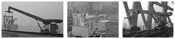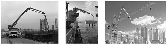 2.6 混凝土布料機械 混凝土布料設(shè)備是商品混凝土泵送到施工澆筑層后將混凝土送達澆筑部位的關(guān)鍵設(shè)備,我院在全國最早研發(fā)成功系列布料幅度為10m~32m的液壓式混凝土布料機,包括移動、固定、船載、內(nèi)爬、樓板爬升、車載、輪式、履帶式、快裝等型式,其中HGY10型混凝土布料桿獲1999年建設(shè)部科技進步三等獎;承擔了國家級課題“鐵路現(xiàn)澆梁專用混凝土布料機”和“九五”科技攻關(guān)項目“起重、布料兩用塔機的研究”,該成果達到國際先進水平,獲建設(shè)部科技進步二等獎。 車載式混凝土布料機見圖17,船載式混凝土布料機見圖18,起重、布料兩用塔機見圖19。 ![]() 圖17 車載式混凝土布料機 | 圖18 船載式混凝土布料機 | 圖19 起重、布料兩用塔機