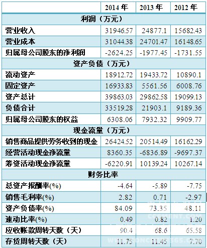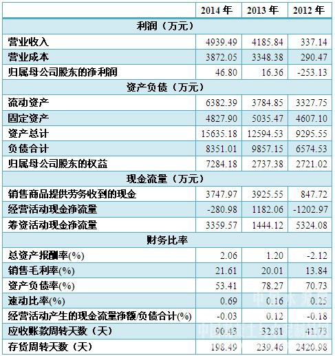 從公司的各項(xiàng)財(cái)務(wù)指標(biāo)來看,其盈利能力及營運(yùn)能力指標(biāo)處于整個(gè)水泥、混凝土及制品行業(yè)中等偏弱的水平,但與有管樁生產(chǎn)的上市企業(yè)比較,其產(chǎn)品銷售毛利率算是較高水平(2014年柘中建設(shè)管樁銷售毛利率11.11%,塔牌水泥管樁銷售毛利率10.86%,中技控股管樁銷售毛利率9.52%)。 從各項(xiàng)財(cái)務(wù)指標(biāo)的縱向?qū)Ρ葋砜矗?014年公司的盈利能力、資本結(jié)構(gòu)、償債能力及營運(yùn)能力較2013年均有明顯好轉(zhuǎn),成長性可期。 中天管樁(832330.OC) 公司簡要介紹: 中天管樁成立于2007年,2007年底生產(chǎn)線投產(chǎn),2010年蕪湖第二條生產(chǎn)線建成投產(chǎn),2012年10月與偉星集團(tuán)正式合作,2013年江蘇楊泰公司動(dòng)工,2014年8月江蘇楊泰公司第一條全自動(dòng)化生產(chǎn)線投產(chǎn)。2014年底完成股份制改革,2015年4月16日成功掛牌新三板。 公司控股股東為安徽偉星置業(yè)有限公司(由中國偉星集團(tuán)、浙江偉星房地產(chǎn)開發(fā)有限公司共同投資組建),持股比例為40%,為公司實(shí)際控制人;公司董事監(jiān)事及高級(jí)管理人員持股31.8%。董事會(huì)7名成員中包括董事長在內(nèi)的4名成員曾就職于安徽偉星置業(yè),1名(總經(jīng)理)曾任建華管樁集團(tuán)副總裁。偉星集團(tuán)培養(yǎng)了兩個(gè)中小板上市公司--偉星股份和偉星新材,中天管樁新三板成功上市,可以大膽預(yù)測(cè)未來如果能夠成功跳入主板,將成為偉星集團(tuán)旗下第三家上市公司。 公司財(cái)務(wù)狀況: 2014年公司由于新生產(chǎn)線的投產(chǎn),銷售收入大幅增長,但由于成本過高,歸屬母公司股東的凈利潤仍呈虧損狀態(tài)。截止到2014年底,公司流動(dòng)負(fù)債高于流動(dòng)資產(chǎn),短期償債風(fēng)險(xiǎn)較高。
