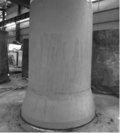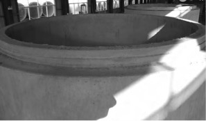 (3)改進(jìn)效果:經(jīng)過對混凝土配合比、布料速度、啟振時機(jī)、振動頻率、振動時間、碾壓時間及碾壓力的調(diào)整和規(guī)范,產(chǎn)品成型脫模后的管體外觀質(zhì)量大為提高,基本消除了管壁表面蜂窩、麻面等缺陷,如圖2所示。 ![]() 圖2 改進(jìn)后的管壁外觀照片