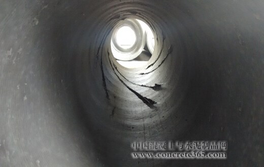 (6)合理調(diào)整限位開關(guān)的位置,滿足生產(chǎn)需要。 (7)及時檢查動力頭的轉(zhuǎn)動情況,減少動力頭磨損。 (8)根據(jù)產(chǎn)品尺寸調(diào)整喂料盤限位開關(guān)高度。限位開關(guān)高會造成插口尺寸不準(zhǔn)和氣動力不足;限位開關(guān)低會使定位盤受力過大,長時間會發(fā)生變形。 (9)調(diào)整模具底部螺栓的高度,防止由于模具高度不一致對承口振動效果造成影響。 在設(shè)備控制方面需要注意的事項(xiàng)還有很多,在此僅列舉部分容易忽視且對產(chǎn)品質(zhì)量影響較大的因素。 2、材料控制 材料的控制主要是指材料的選擇和配合比的設(shè)計(jì)。 立式徑向擠壓用混凝土與普通混凝土 相比有許多不同的特點(diǎn)。因此,需要根據(jù)制品及其工藝特點(diǎn)選擇其配合比。 在通常的混凝土配比設(shè)計(jì)中,達(dá)到設(shè)計(jì)強(qiáng)度很容易,但要配制出滿足工藝特點(diǎn)、保證產(chǎn)品標(biāo)準(zhǔn)質(zhì)量,同時還要兼顧成本等綜合性能卻是很難做到的。因此,需要結(jié)合徑向擠壓的工藝特點(diǎn)進(jìn)行特殊配合比的設(shè)計(jì)。 (1)材料選型 ①水泥 徑向擠壓為立式生產(chǎn)、產(chǎn)品管徑小、高度大,受自身重力作用而發(fā)生沉降明顯,且擠壓成型脫模后,由于鋼筋內(nèi)力回彈使管身發(fā)生轉(zhuǎn)動,容易產(chǎn)生裂縫。因此,在水泥的選擇上除了滿足GB175的技術(shù)要求外,還應(yīng)盡量選擇穩(wěn)定性好,質(zhì)量均勻,凝結(jié)時間快,粘聚性大的產(chǎn)品。 ②砂 盡量選用2.3~3.0的中砂,條件允許的情況下可以摻加一部分的細(xì)砂,以保證水泥砂漿可以盡量充分的填充石子之間的空隙。砂的質(zhì)量嚴(yán)格按照建筑用砂標(biāo)準(zhǔn)執(zhí)行。 在保證強(qiáng)度的前提下可以適當(dāng)提高砂率,達(dá)到密實(shí)度更好的效果。最大砂率可控制在45左右%。 ③石 此種工藝主要是由喂料機(jī)不斷的喂料,通過擠壓頭不斷的向模具四周擠壓,修整頭研磨成型且管壁較薄。對滾輪磨損極大,極易造成變形和損壞。同時,由于滾輪的變形會造成布料不均,使管壁發(fā)生偏心。因此,粗骨料的粒徑宜小不宜大,一般選用5~10mm或5~16mm 的連續(xù)級配。 在粗骨料的幾何尺寸選擇上也需特別注意。卵石對設(shè)備的磨損影響較小,且有利于砂漿的填充,但是與混凝土的粘結(jié)咬合力較差;碎石與混凝土的粘結(jié)咬合力強(qiáng),但是對設(shè)備的磨損大。針對這種情況,應(yīng)采用卵石與碎石結(jié)合使用的方法較好。 ④摻合料 添加摻合料的主要目的是在保證產(chǎn)品強(qiáng)度及外觀質(zhì)量的情況下減少水泥用量,降低施工成本。摻合料質(zhì)量及摻合量只要滿足國家相關(guān)標(biāo)準(zhǔn)即可,在此不贅述。 ⑤鋼筋 鋼筋在原材選擇和制作上要滿足相關(guān)的圖集及標(biāo)準(zhǔn)。 根據(jù)徑向擠壓管的成型特點(diǎn),其對鋼筋籠質(zhì)量的要求極高,甚至可以說此工藝成型的成敗的關(guān)鍵在鋼筋骨架。下面以采用單層鋼筋骨架制管為例簡述鋼筋骨架質(zhì)量的重要性。 首先、鋼筋骨架的焊接質(zhì)量必須保證。由于在采用徑向擠壓制管過程中存在巨大的扭力作用。一旦骨架某個點(diǎn)開焊,極易發(fā)生連鎖效應(yīng),造成骨架扭曲、扭壞或散架。 其次、鋼筋骨架的垂直度必須保證。目前,鋼筋骨架的焊接大多采用滾焊機(jī)完成。通過長時間對比推筋和拉筋兩種焊接工藝,認(rèn)為采用拉筋的形式所制作的鋼筋骨架垂直度較好,縱筋不會發(fā)生扭曲現(xiàn)象。另外,還需經(jīng)常檢查滾焊機(jī)相關(guān)參數(shù)及易耗品的磨損情況并及時更換。 第三、嚴(yán)格控制鋼筋骨架的尺寸。鋼筋骨架的高度,圓度必須經(jīng)過嚴(yán)格計(jì)算。鋼筋骨架與模具組合并鎖定氣缸后,以稍用力能在模具內(nèi)發(fā)生轉(zhuǎn)動為宜,用以盡量減少在制管過程中產(chǎn)生的內(nèi)力。若鋼筋骨架較大,則容易在承口稍向上部位發(fā)生扭筋現(xiàn)象(如圖3);若鋼筋骨架過小,則氣缸無法對其固定,制管過程中容易發(fā)生骨架下沉或在插口處出現(xiàn)扭筋現(xiàn)象(如圖4)。 第四、嚴(yán)格控制鋼筋骨架的高度,以剛好接觸碾壓盤下方為宜。若較長,則容易將骨架壓變形;若較短則保護(hù)層無法保證。 ![]() 圖3 ![]() 圖4